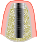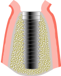 | 2.治癒期間 | 顎の骨とインプラントの表面がしっかりと結合するまで待ちます。 (上顎は平均6ヶ月、下顎は平均3ヶ月) |