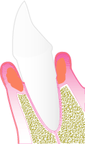 再生療法とは、外科的処置の際に、特殊な材料を用いて部分的に失われた歯周組織を再生するために行われる処置です。この処置は、病態にあった方法が適用されます。