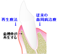 再生療法は、歯周病で失われた歯周組織を再生することができる最新の治療法です。